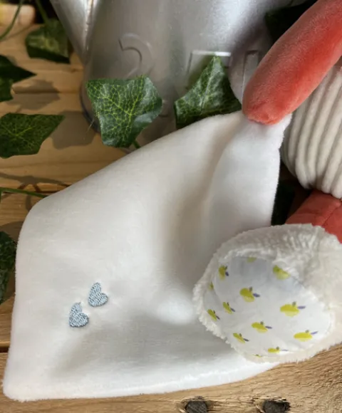 Découvrez Romarin, le pantin doudou renard, un compagnon idéal pour stimuler l’imagination de Bébé tout en lui offrant douceur et réconfort. Sa bouille attendrissante et son design plein de tendresse en font un cadeau de naissance original et mémorable.