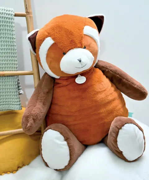 Un Amour avec un grand « A » pour ma peluche Panda roux XXL ! Ce panda roux geant est entièrement réalisé en matière toute douce. Ce mélange de couleurs orangées sublimeront la chambre de bébé et apporteront assurément des souvenirs inoubliables à leurs petits propriétaires. Cette collection imaginée exclusivement par Doudou et Compagnie pour UNICEF, permet de récolter des fonds pour Unicef, pour ensemble continuer à faire avancer les droits de l’enfant. Un cadeau solidaire à offrir pour un enfant à partir de 18 mois.