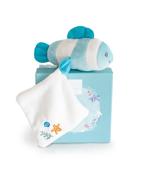 - Mini peluche poisson clown avec carré doudou ultra doux,