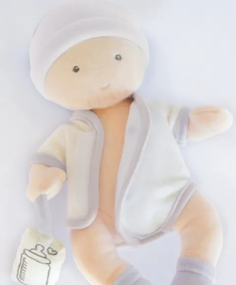 Cet adorable poupon est tout doux, tout souple. Avec son joli couffin, son petit biberon et son body amovible blanc et gris, c’est un formidable compagnon de jeux pour tous les petits. Jouer avec un poupon aide l’enfant à réguler ses émotions quotidiennes, développer sa motricité et son imagination tout en s’amusant. Un cadeau idéal dès la naissance. Poupon lavable à 30°. Couffin lavable en surface. Inédit ! Ce produit bénéficie de LA GARANTIE DOUDOU. Grâce à son numéro unique, Doudou perdu est vite retrouvé ! Enregistrez votre Doudou et découvrez toutes les garanties sur le site doudouetcompagnie.com