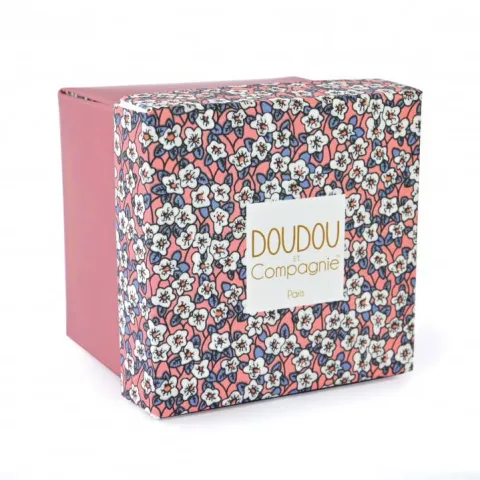 • Doudou présenté dans une boîte fleur suprise, on peut y insérer des souvenirs de bébé ! (photos, souvenirs de la naissance de bébé)