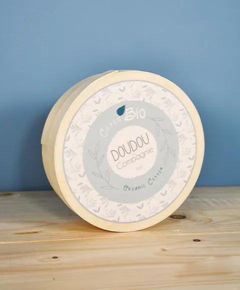 Présenté dans une jolie boite cadeau ronde en bois naturel, ce Doudou frais aux couleurs tendres est accessoirisé de lange de coton au motif végétal délicat. Un cadeau idéal dès la naissance.