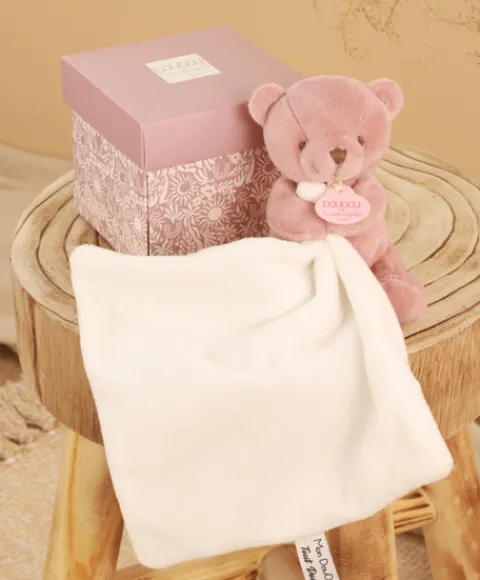 Décliné en 8 couleurs tendances, chaque Doudou mouchoir ourson tient délicatement entre ses pattes un petit mouchoir blanc. Conçu en mono-matière, il offre une douceur incomparable et un toucher rassurant pour accompagner les premiers câlins.
