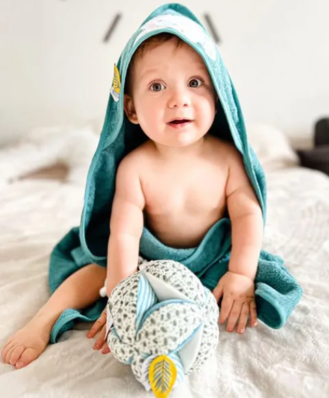 La balle d’activités Yoca le koala est conçue pour stimuler les sens en développement de votre bébé. Les textures procurent une stimulation tactile et une facilité de préhension, cette balle de préhension avec hochet est composée de 12 coussinets moelleux, servant de petites poignées adaptées à la taille des mains de bébé. Elle lui permet des muscler ses mains, exercer sa vue et développer sa coordination, Un cadeau de naissance original ! Ce produit ne possède pas de boite, pensez au sac cadeau.