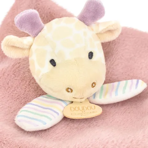 Offrez à votre bébé le réconfort et la tendresse d’un mini doudou girafe rose si adorable. Un Doudou® tendre et apaisant pour Bébé, un compagnon précieux qui l’accompagnera dans ses aventures.
