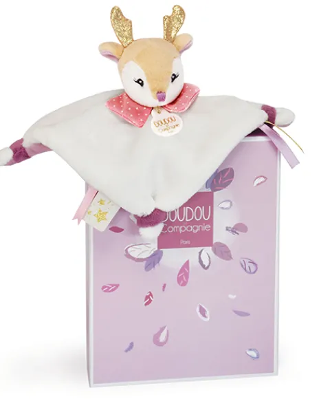 Voici un Doudou plat faon bien mignon ! Il est très doux, harmonieusement coloré, facile à manipuler et bien pensé pour répondre aux besoins des petites mains. Il appartient à la collection « Méli Mélo », chacun des doudous animaux est présenté dans une jolie boîte, c’est un cadeau idéal dès la naissance.