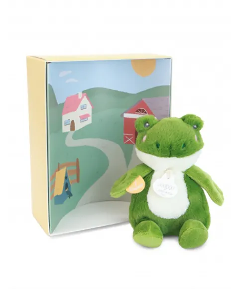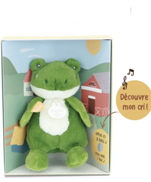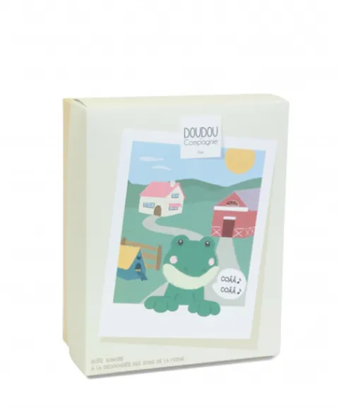 Doudou et Compagnie Peluche grenouille – 17 cm – DOUDOU de la ferme avec boite sonore> Peluches