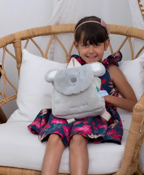Ce joli sac à dos peluche koala gris est entièrement réalisé en matière toute douce. Amusant, son rabat en peluche est en forme de tête d’animal ! Facile d’utilisation avec sa fermeture velcro, ses sangles sont réglables. D’une taille parfaite pour ranger le Doudou, un change et son goûter, c’est un cadeau idéal dès 18 mois.